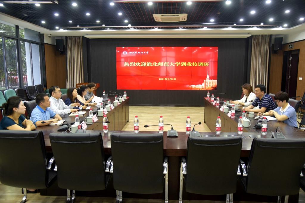 6月2日下午,淮北师范大学党委常委、纪委书记曹灯明,党委常委、宣传部部长、学科建设与发展规划处处长高玉兰等一行到校交流调研。我校教务处、研究生院(学科建设办公室)、人事处、国际工商管理学院等部门及学院负责人出席会议。会议由我校教务处处长刘玉梅主持。
