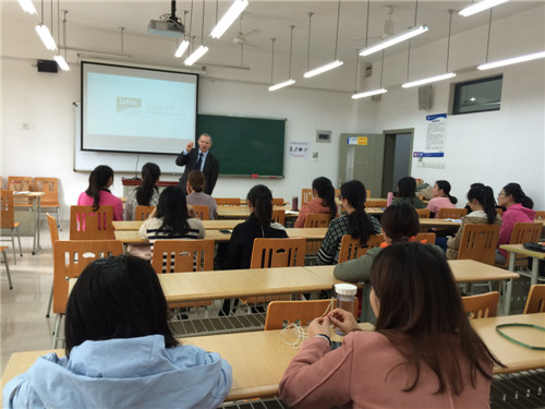 先生分别用法语和英语为我校同学带来istec留学讲座,分享了istec的优质的教学资源,介绍了各自丰富的名企工作经验,并鼓励有志从事国际商务的同学出国深造。两场讲座内容丰富、语言幽默,学生反响热烈。