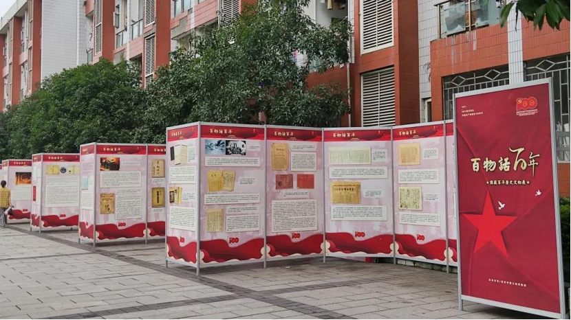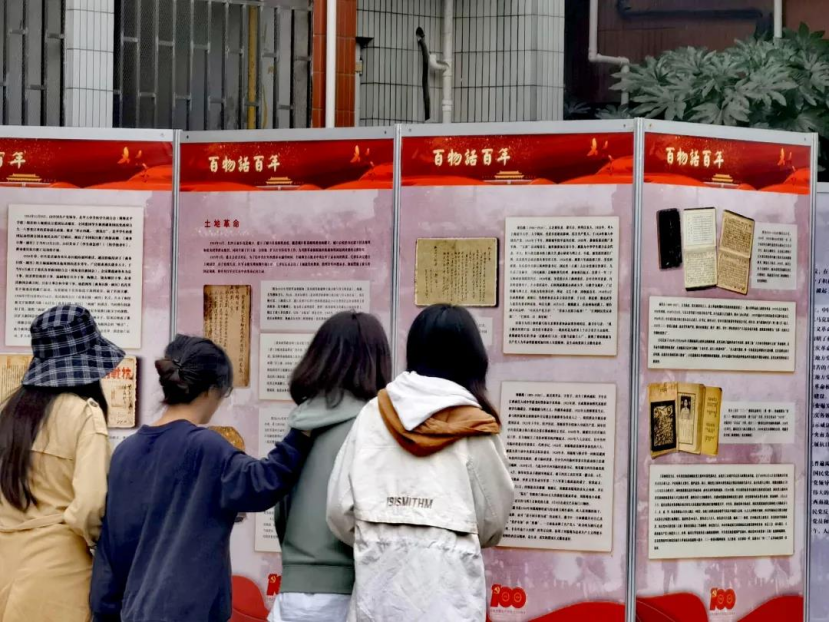 为了深入开展党史学习教育,贯彻落实“学史明理、学史增信、学史崇德、学史力行”要求,2021年10月11日—20日,“学百年党史,力青春之行”系列活动之“百物话百年——馆藏百年历史文物展”在我校松苑十五栋前举行。该展由重庆中国三峡博物馆主办,学校党委学生工作部承办,学生之家功能型特设党支部、大学生党员示范岗协办。