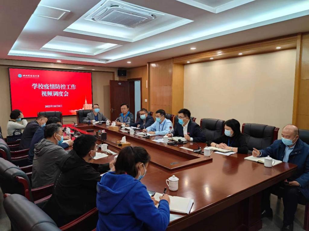 10月8日晚10点,学校召开疫情处置工作布置会,通报四川外国语大学“10·7”突发新冠肺炎疫情处置工作情况,安排部署接下来的疫情防控工作。市教委一级巡视员邓沁泉、二级巡视员胡斌、体卫艺处处长程翔宇,沙区疾控中心党支部书记何建军,市卫生保健所科长向淑平,我校全体校领导、中干共计160人通过线上线下结合的方式参会。