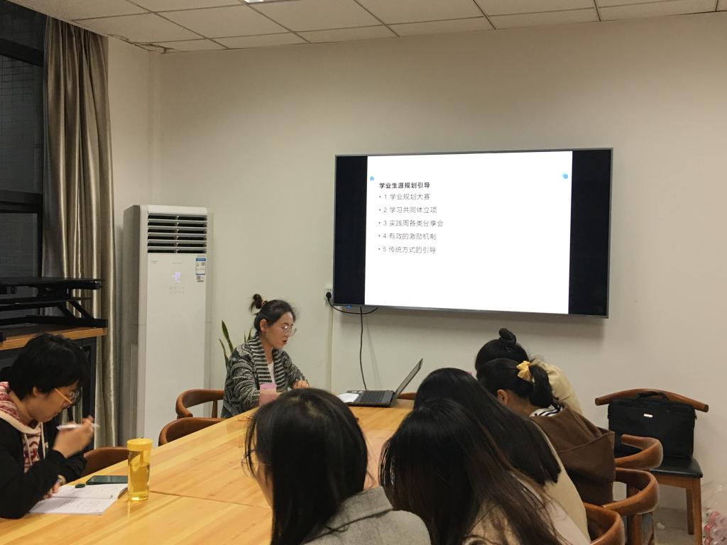 第六期辅导员沙龙活动的主题是“大学生学业规划生涯教育”,主讲人是英语学院2017级辅导员王岩。她指出,“学业生涯规划”是大学生对自身学习、成长与发展的一种统合,它可以教会大学生实现自我认知,引导大学生如何将理想付诸于行动来实现。通过学业生涯规划,大学生可学会合理规划自身学习、成长和发展,也促使他们了解自身个性特点和职业兴趣,促进大学生就业,帮助他们建立自我认同,树立正确的学业观、择业观、人生价值观等。王岩结合自身经验,提出了学业生涯规划“三方法”,一是分阶段规划学业,针对不同年级的学生规划的侧重点不同,比如大一的学生,主要是引导新生积极参加各类活动,找到感兴趣的方向,并制定一个详细的规划书;二是明确学业目标,指导学生分析兴趣爱好、能力特长,帮助学生分析未来发展,预估社会要求;三是学业生涯规划引导,督促学生积极参加学业规划大赛、学习共同体立项等活动,积极筹备实践周各类分享会,并建立有效的激励机制。商务英语学院2020级辅导员呙明君建议,除了正向引导学生,还应结合负面案例去激励学生。