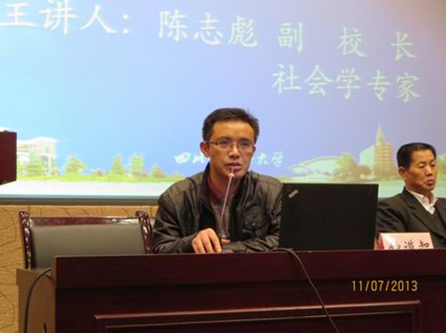 11月7日晚,我校社会科学部“创享社会”学术活动月系列讲座(二)“感悟人生”在东区宏文楼二楼报告厅举行。此次讲座由我校副校长陈志彪主讲。社会学及社会工作教研室主任邓晓梅博士、社科部团总支书记张霭旼及社科部师生代表聆听了本次讲座。讲座由社会科学部主任钟谟智教授主持。