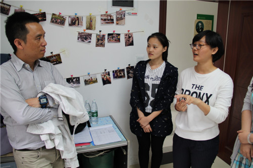 曾鹏宇作为川外广播第二任站长,在党委宣传部部长崔光军和广播站指导老师侯丽娟的陪同下,于当天下午到广播站内与同学们亲切交流。交流过程中,曾鹏宇与同学们分享了他任广播站长时的工作经历和趣事,并对广播站的发展现状和成果表示赞许。