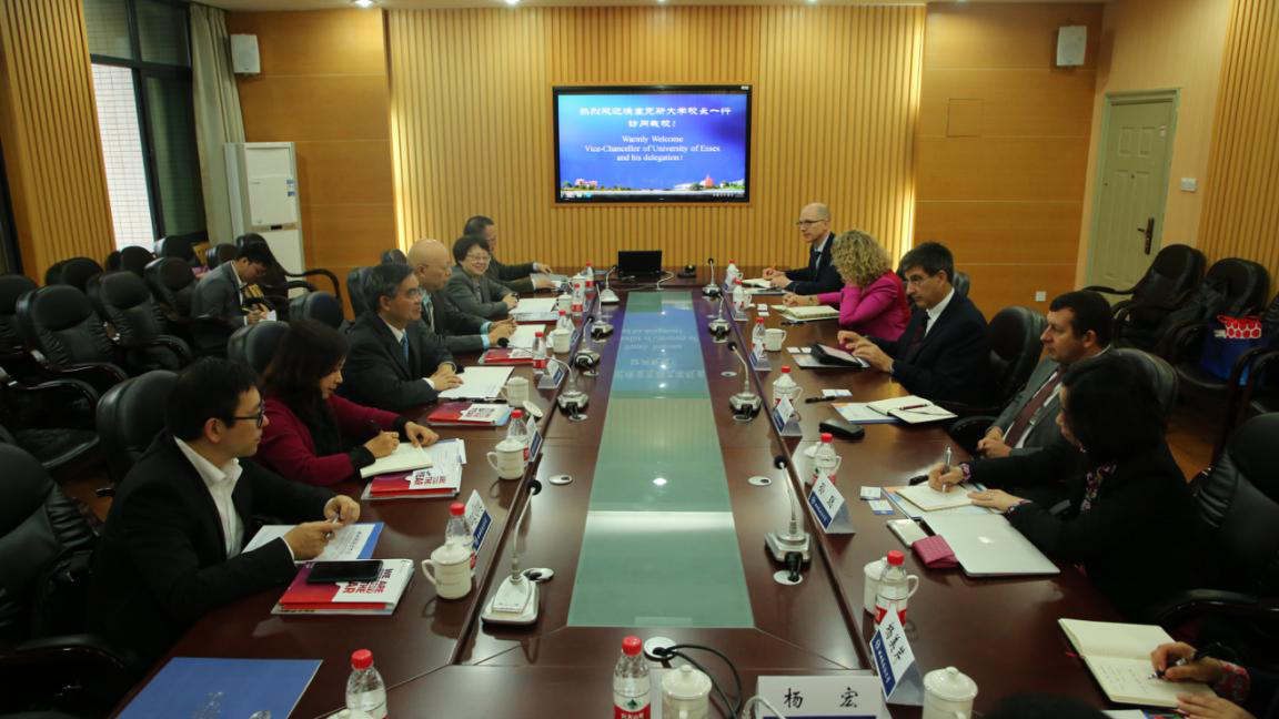 10月21日上午,英国埃塞克大学校长Anthony Forster、全球事务副校长Vanessa Potter等一行六人来访我校,校长李克勇、副校长李小川亲切接待了来宾。国际合作与交流处处长张幼斌,国际关系学院院长刘玉梅、党总支书记高绍邦等共同参加接访。