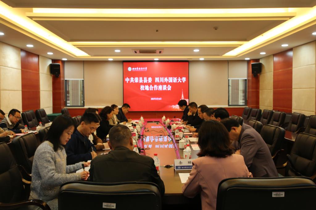 2021年3月16日上午,中共荣县县委与四川外国语大学校地合作座谈会在图书馆505会议室举行。中共荣县县委常委倪志勇、学校党委副书记苟朝莉出席会议并讲话。会议由副校长郑白玲主持。