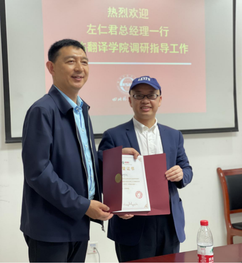5月12日, 左仁君总经理一行来我院进行交流访问,讨论共建校企合作与人才培养模式的新平台。翻译学院师生代表和学校部分兄弟学院院长和副院长参加了交流会。