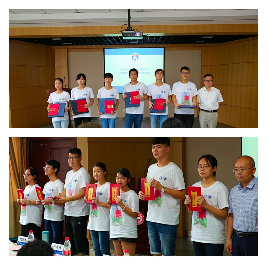 廖林清宣读了《重庆理工大学四川外国语大学关于表彰2016级中美金融教改班先进个人的决定》并为获奖同学颁奖。教改班罗雪菲、袁琦梦等七名同学获得先进个人。廖校长希望大家再接再厉,在今后的学习中取得更好的成绩。祝朝伟宣读了《四川外国语大学关于授予2016级中美金融教改班33名同学结业证书的决定》并为同学们颁发了证书。