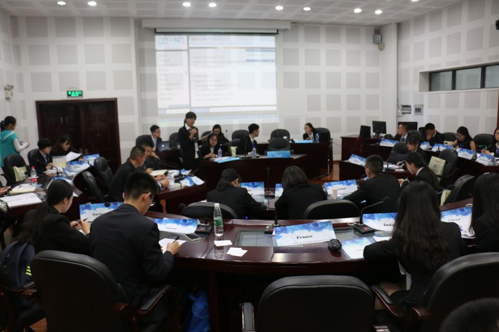 秘书长刘畅宣布“2016西南高校模拟联合国大会”开幕。自此,为期两天的模拟联合国大会将在我校西区A栋教学楼四个分会场展开,来自西南地区各个高校的优秀大学生同场发声,彰显实力、展示魅力,在提升自我的同时推动西南模联的向好发展。