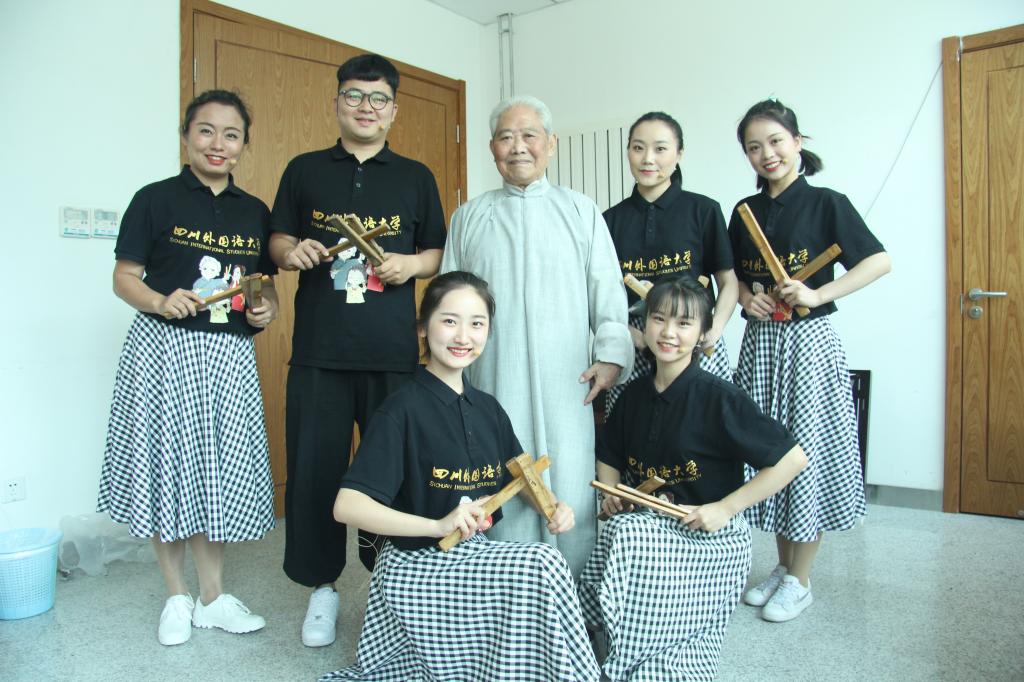 四川金钱板国家级代表性传承人张徐与非遗基地师生合影