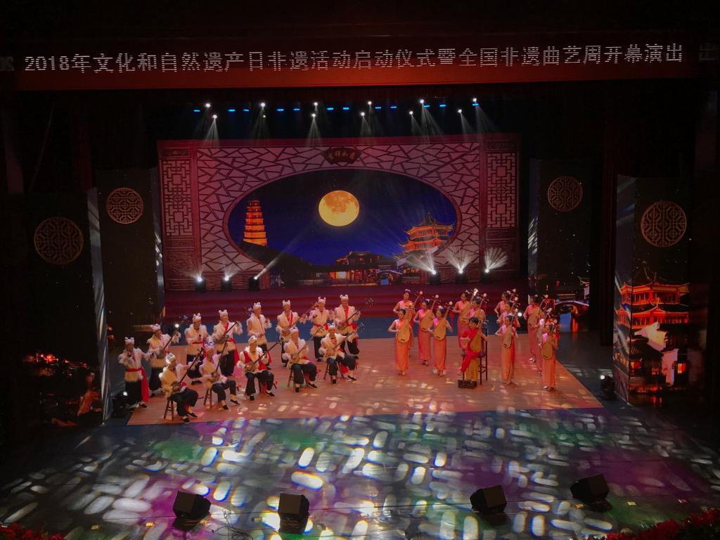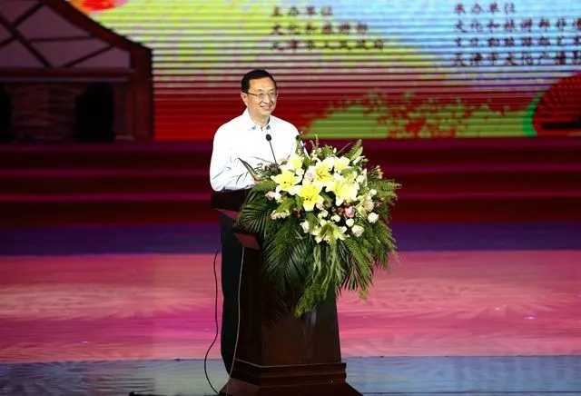 6月8日晚,2018年“文化和自然遗产日”非遗活动启动仪式暨全国非遗曲艺周开幕演出在天津中华剧院举行,文化和旅游部党组书记、部长雒树刚出席活动并致辞。文化和旅游部党组成员、副部长项兆伦出席。天津市副市长赵海山致欢迎词。我校非遗基地师生观看学习了来自全国各地的11个曲艺类国家级非遗节目。开幕式前,重庆市文化委员会副主任钟建波前来慰问,为非遗师生加油鼓劲。