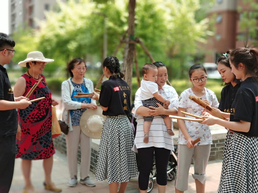6月11日,非遗基地师生走进天津市红桥区和苑街道营和园社区和欧亚达商业广场,为市民展示了金钱板传统作品《武松打虎》(选段)和现代作品《重庆热》。6月12日,在天津市河西区文化中心音乐厅举行的全国非遗曲艺周第七场驻场演出中,非遗基地师生再次向天津市民展示了金钱板的魅力。