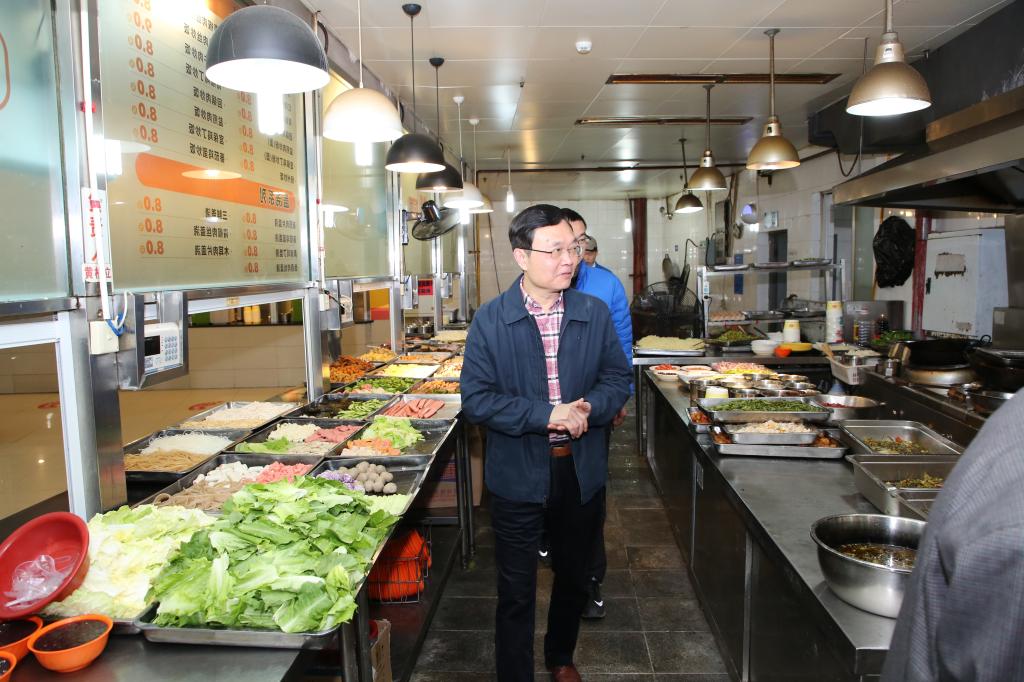 3月26日上午,李彦副校长带领后勤管理处廖礼彬处长、后勤党总支书记曾健深入食堂,针对食品卫生安全工作进行了大检查。