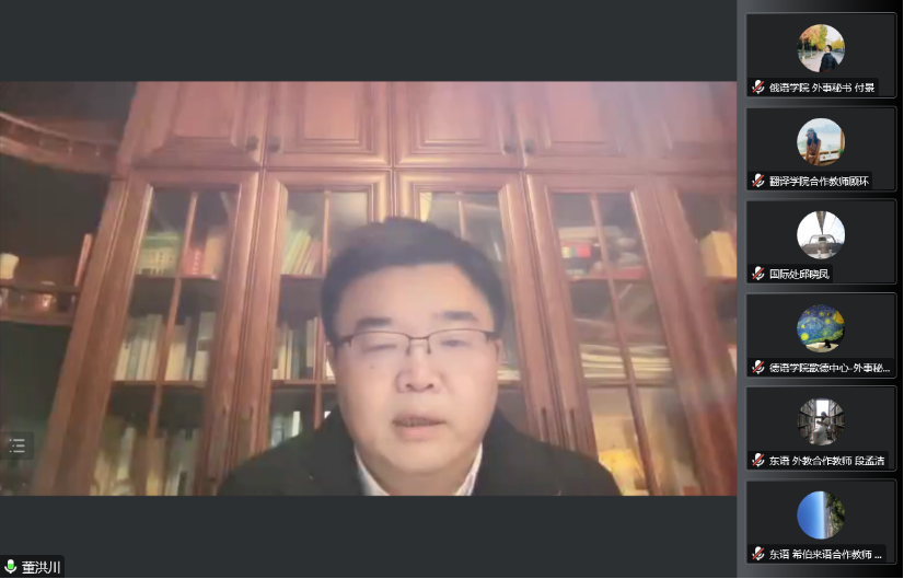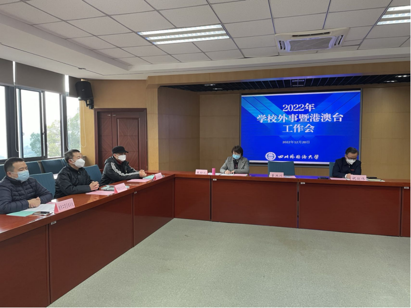 12月20日下午,学校2022年外事暨港澳台工作会通过“线下+线上”相结合的方式顺利召开。校长董洪川、副校长祝朝伟出席会议。党政办公室、党委宣传部、党委学生工作部、党委教师工作部、党委保卫部、团委、教育规划与评估院、教务处、研究生院、人事处、科研处、招生就业处、校地合作处、图书馆、国际合作与交流处(港澳台办公室)等部门主要负责人及各二级学院分管外事工作负责人、外事秘书、外教合作教师参加会议。会议由副校长祝朝伟主持。