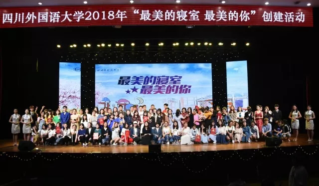 最美的寝室,最美的你——四川外国语大学2018年“最美寝室”大赛于2018年4月23日在学校东区大礼堂圆满举行。本次大赛由学生工作部(处)、后勤管理处联合主办,商务英语学院承办。副校长张季菁、学生工作部(处)部(处)长吴维均、宣传统战部常务副部长崔光军、商务英语学院院长段玲琍以及各学院(系)师生代表观看了本次大赛。