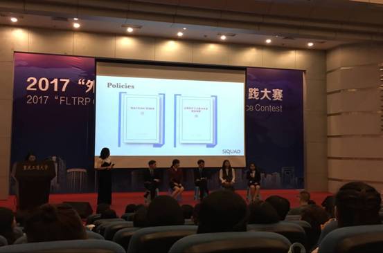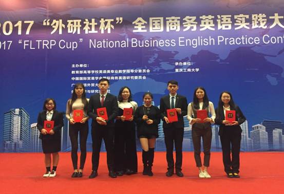 2017“外研社杯”全国商务英语实践大赛西南赛区选拔赛于10月21日在重庆工商大学顺利落下帷幕。在我校甘姝姝老师指导下,由商务英语学院2015级汪楠、王巍翔、何健、李君璇、林忆楠、彭谦、王语嫣共七名同学组成的参赛队伍“SiQUAD”在比赛中大显身手,脱颖而出,成功摘得比赛桂冠,获得前往广东参加商务英语实践大赛全国总决赛的资格。