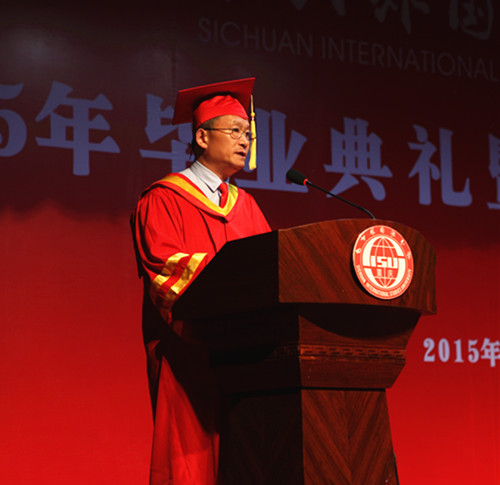 典礼最后,李克勇校长为毕业生送出寄语。他讲到,“今天我们送走的是2015届毕业生青春跃动的身影,留下的是我们值守校园的难忘记忆。希望同学们崇德修身,向善向上。要严以修身,严以律己,经得起诱惑,顶得住邪恶,不在名利诱惑中放任自流,不在义利纠结中迷失自我;希望同学们勤学好思,不断进步。大学毕业并不是学习的终点,而是一个新的起点;希望同学们严谨求实,锐意进取。从小事做起,把小事做好;学会不忘责任,不忘使命,敢于担当。”