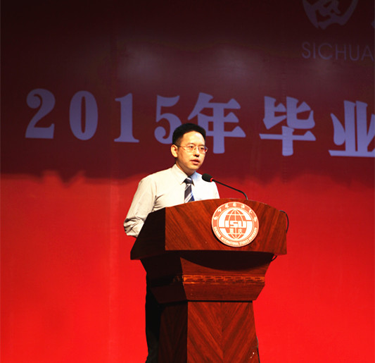 国际关系学院张庆老师代表全体教师发言。他回忆了自身在川外的求学历程,“从川外本科、研究生毕业,到承蒙学校关心支持,我有幸前往中国社会科学院研究生院就读博士研究生。今天,我站在这里见证同学们难忘的毕业时刻,明天我也将启程参加社科院的毕业典礼。”作为学长、师长,他勉励毕业生“世界是一面镜子,照射着我们内心。我们内心是什么样子,这个世界就是什么样子。选择抱怨,我们内心充满痛苦、黑暗和绝望;选择感恩,我们的世界就充满阳光、希望和爱。这个世界不会因为你的抱怨而改变,但你的人生一定因为你的感恩而灿烂。”