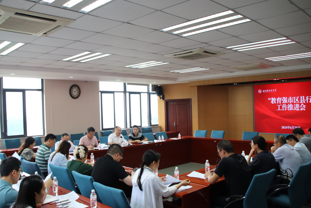 严功军副校长最后强调,各部门各学院要结合本次会议精神,全面总结本单位前期在推动服务区县工作中的成绩和亮点,反思问题和不足;要结合本单位资源优势和工作特色,深入思考和谋划下一步拓展服务区县的工作内容和抓手,既要考虑工作前瞻性,又要考虑工作可操作性,培育发展我校教育教学新质生产力,切实在服务教育强市区县行动中贡献川外的智慧和力量。