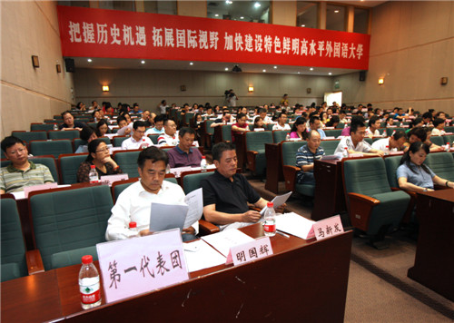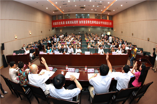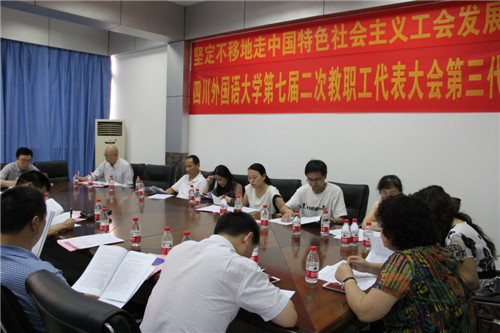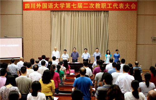 7月2日下午,我校第七届二次教职工代表大会在宏文楼国际报告厅召开。本次大会主要任务是听取和审议《2013—2014学年学校工作报告》和《四川外国语大学绩效工资实施办法》(草案)。