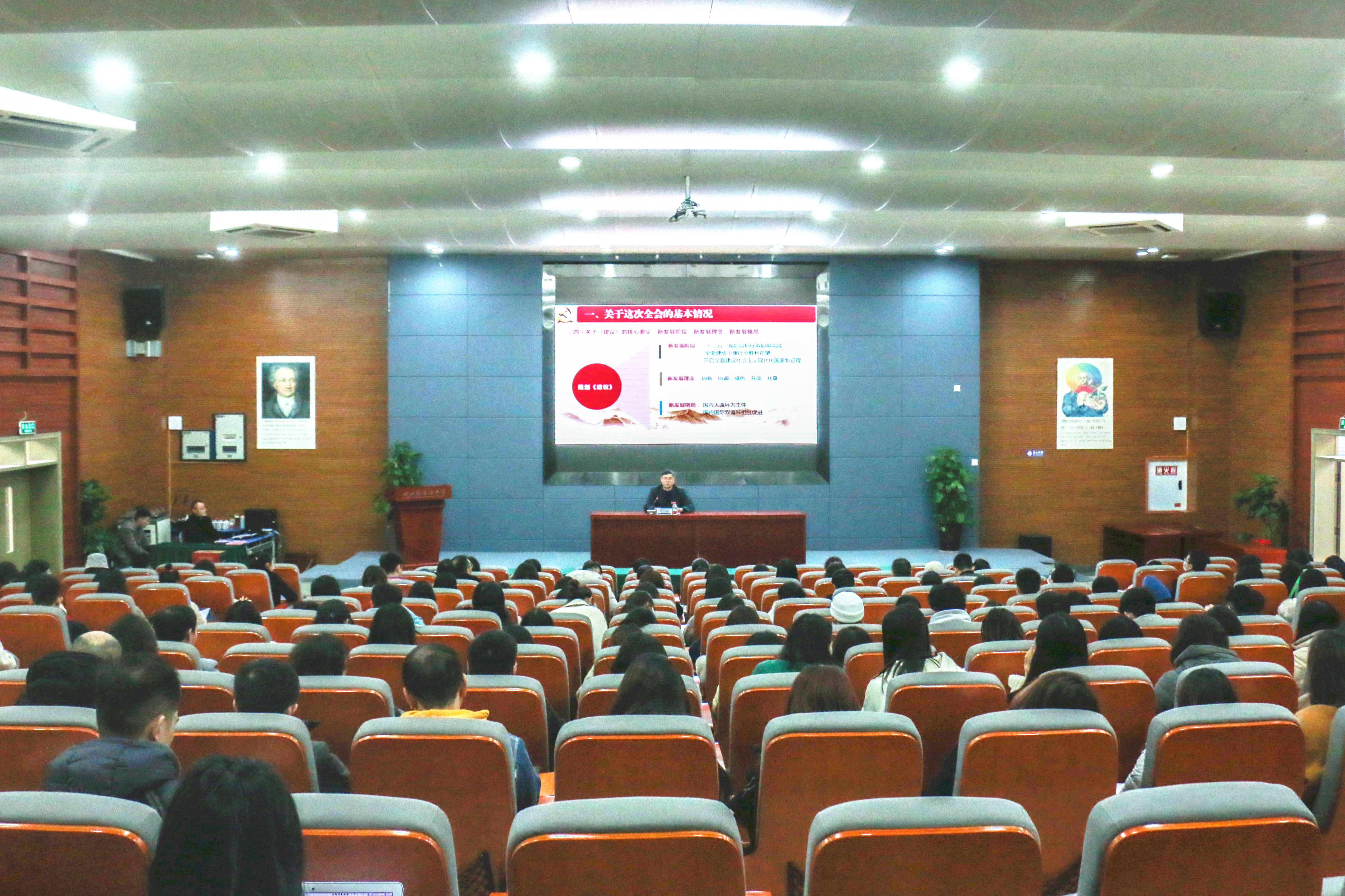 编者按:党的十九届五中全会擘画了我国“十四五”时期及二〇三五年发展的宏伟蓝图,作出了应对变局、开辟新局的顶层设计,在党和国家发展进程中具有全局性、历史性意义。宏伟蓝图鼓舞人心,学习宣讲凝聚力量。连日来,我校校领导分别深入部门、院系为师生开展宣讲,掀起学习贯彻党的十九届五中全会精神热潮。