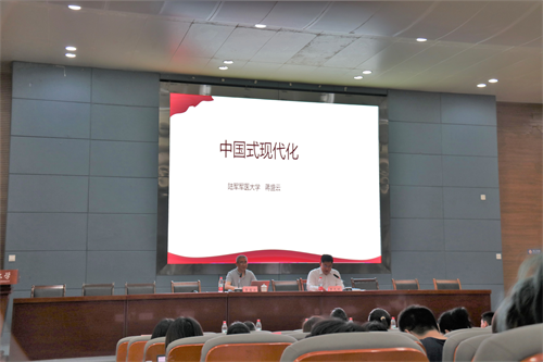 坚持不断用党的创新理论武装师生头脑,深学笃信习近平新时代中国特色社会主义思想,扎实推动主题教育走深走实,国际工商管理学院于4月21日下午在歌乐楼A幢报告厅举办中国式现代化理论专题学习。全军院校教学评价专家、陆军军医大学专家咨询委员会委员、教学督导专家蒋盛云教授受邀来院开展《以中国式现代化全面推进中华民族伟大复兴》讲座,对中国式现代化发展之路进行深度讲解。讲座由我院党总支书记罗先明主持。全体院领导、全院教职工、全体师生党员、民主党派成员、本期党校学员、红岩团校学员、学生代表近300人参加学习。