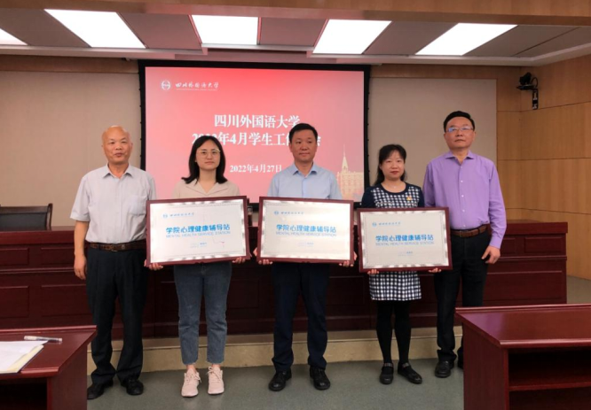 经自愿申报、校外专家评审、公示、学生事务工作委员会审定等程序,国际法学与社会学院、商务英语学院、东方语言文化学院成为首批学院心理健康辅导站。2022年4月27日党委常委、副校长李彦,关心下一代工作委员会常务副主任聂志强为首批学院心理健康辅导站授牌。