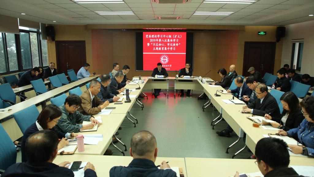 根据“不忘初心、牢记使命”主题教育的学习安排,10月21日,学校召开党委理论学习中心组(扩大)2019年第八次集体学习会议。校领导、党委理论学习中心组成员、主题教育集中学习因公请假的同志参加会议。会议由党委书记邹渝主持。