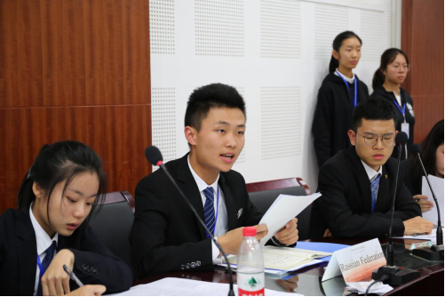 在为期两天的模联大会中,各高校代表合纵连横,通过自己对议题的深刻理解进行深入探讨交流。大会现场气氛严肃,代表们动议和自由磋商中进行思维逻辑的交锋,言辞犀利,思维敏锐,既展现了当代青年学生的精神风貌,也体现了作为外交后备人才的优秀学术水平。我校国际关系学院的指导教师团队也认真观察代表表现,并且给予了精准专业的评价与反馈。