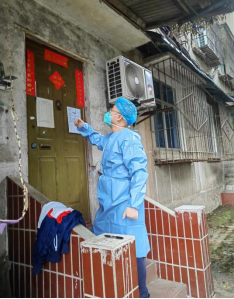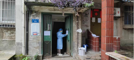 党文娟老师在居民楼组织核酸检测
