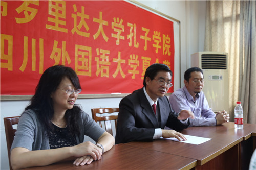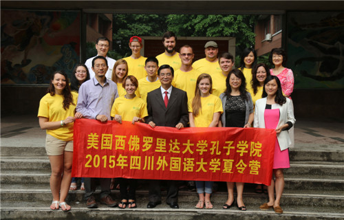 2015年5月18日上午,美国西佛罗里达大学孔子学院2015年四川外国语大学夏令营在我校留学生部正式开营。四川外国语大学校长李克勇,西佛罗里达大学孔子学院中方院长张幼斌,留学生部主任张泽民、副主任申晓武以及全体夏令营师生参加了此次开营仪式。