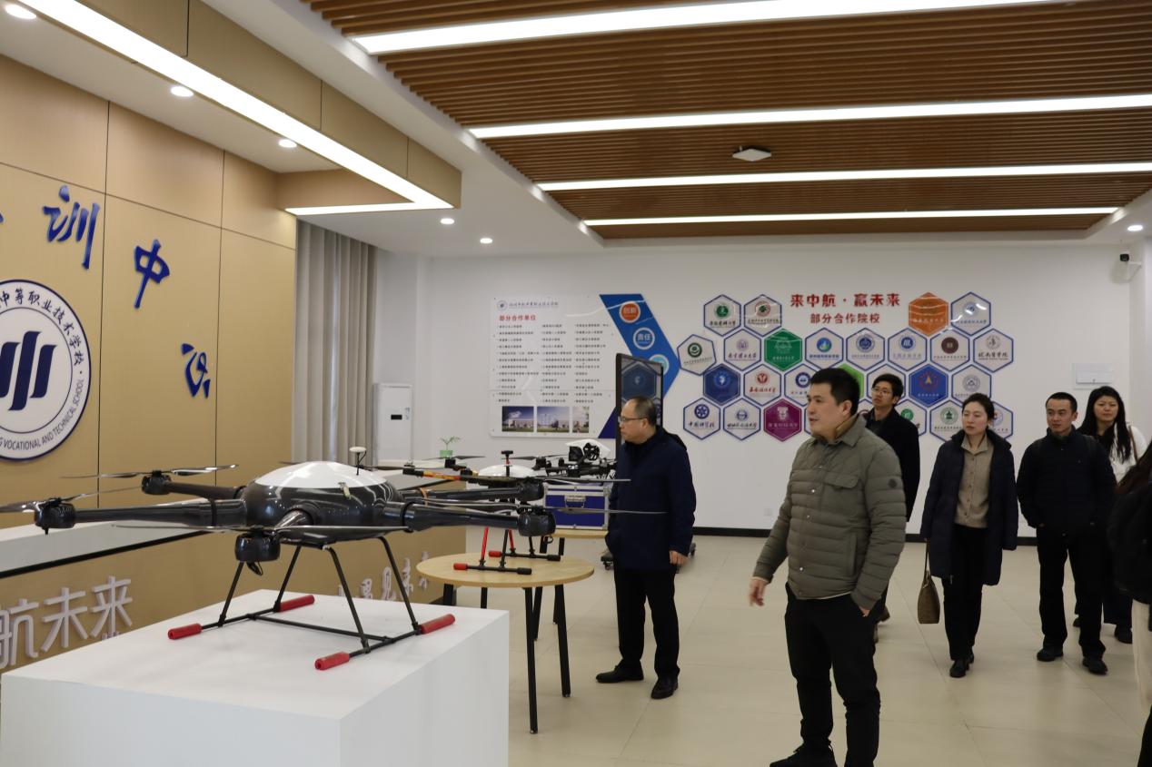 严功军一行在中航未来集团董事长刘永等陪同下参观了中航未来华东航空实训基地,详细考察了实训基地的设施设备、实训场景以及学生管理模式等,深入了解了实训基地建设情况。