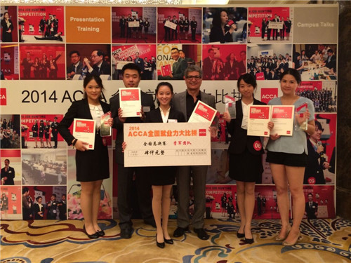 由acca(英国特许公认会计师公会)主办的“acca全球就业力大比拼” 2014中国区总决赛于7月11日在北京落下帷幕。来自湖南大学、广东财经大学、天津财经大学、上海对外经贸大学、武汉大学、四川外国语大学、西安外国语大学、四川大学的八支队伍在全国高校600多支报名队伍中脱颖而出,作为四大赛区的冠亚军一同挺进全国总决赛,争夺“全国总冠军”的殊荣。由我校国际商学院2011级财务管理acca卓越人才教改班四名同学(杨诚、宋雯睿、贾琳、周舒雨)组成的season团队经过激烈比拼,最终在全国总决赛上获得季军。