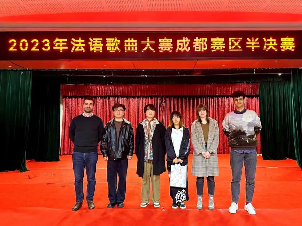 法语歌曲大赛是2023年法语活动月的重要组成部分之一。成都赛区半决赛由法国驻成都总领馆主办,于3月19日在成都法语联盟电子科技大学学生文化活动中心成功举行。比赛从十四位独具风格的参赛选手中产生了前三强。代表我校参赛的是法语学院2019级的秦子淇同学,22级刘宇航和21级王玥铃、杨敬雅同学。