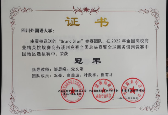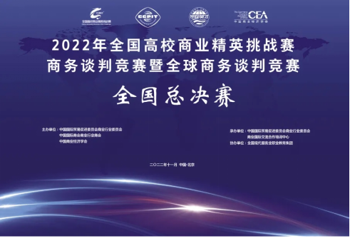 2022年11月13日,2022年全国高校商业精英挑战赛商务谈判竞赛全国总决赛暨全球商务谈判竞赛中国地区选拔赛圆满落下帷幕。此次竞赛是由中国国际贸易促进委员会商业行业委员会、中国国际商会商业行业商会与中国商业经济学会主办的面向在校大学生的综合性商科类专业竞赛。2022年全国高校商业精英挑战赛商务谈判竞赛暨全球商务谈判竞赛中国地区选拔赛吸引了来自全国100多所高等院校报名参赛,覆盖了北京、福建、甘肃、广东、广西、重庆等21个省、直辖市及自治区。经层层选拔,最终180支参赛团队,近2000位辅导教师和参赛选手参加全国总决赛。