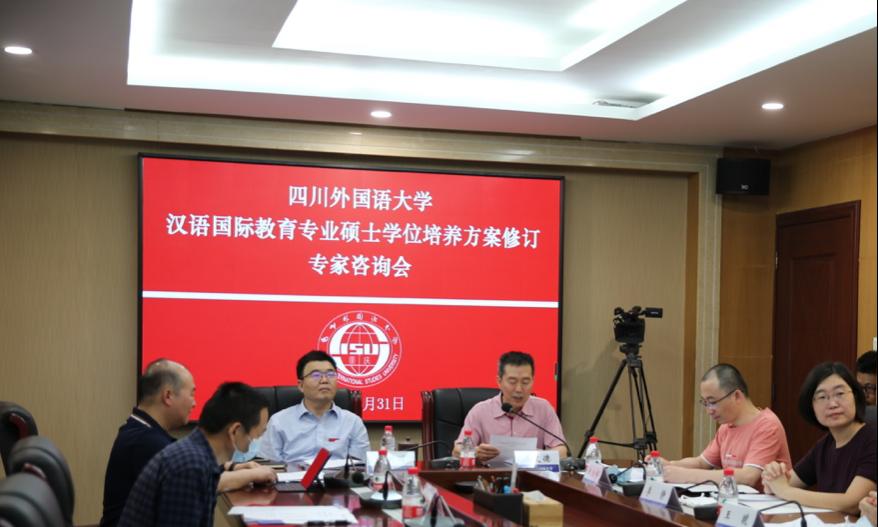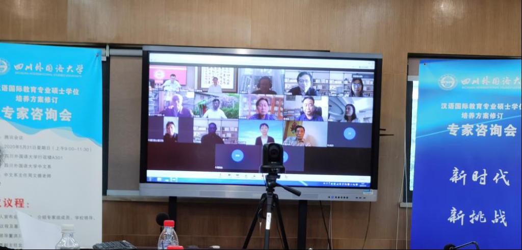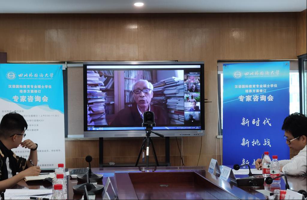 5月31日上午,我校学科办与中文系主办的“四川外国语大学汉语国际教育专业硕士学位培养方案修订专家咨询会”在重庆·四川外国语大学行政楼A301举行。来自汉语国际教育领域的十四位专家通过腾讯会议与我校师生云见面,为学科建设、培养方案修订出谋划策。咨询会以“新时代、新挑战、新起点、新征程:后疫情时代的汉语国际教育”为主题,具体咨询项目包括:发展目标、培养方案、学位标准。专家组成员包括:北京大学陆俭明先生、全国汉语国际教育专业学位研究生教育指导委员会副主任/北京语言大学副校长张旺喜教授、北京语言大学崔希亮教授、中国人民大学李泉教授、北京大学赵杨教授、中山大学周小兵教授、华东师范大学张建民教授、北京师范大学冯丽萍教授、厦门大学方环海教授、暨南大学曾毅平教授、四川大学傅其林教授、云南师范大学魏红教授、北京语言大学王治敏教授等高校专家以及孔子学院总部/国家汉办师资处赵燕清处长。此外,通过云端参加会议的还有西南大学耿军教授和重庆师范大学陈实教授。出席现场会议的有四川外国语大学校长董洪川教授、研究生院院长/学科办主任王仁强教授以及我校汉语国际教育专业的师生代表。会议由中文系主任周文德教授主持。