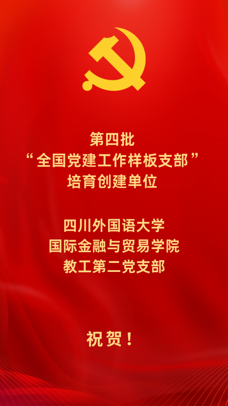 近日,教育部办公厅公布第四批新时代高校党建示范创建和质量创优工作评审结果,我校国际金融与贸易学院教工第二党支部成功入选“全国党建工作样板支部”培育创建单位。这是学校第二个“全国党建工作样板支部”,也是首个获此殊荣的教工党支部。