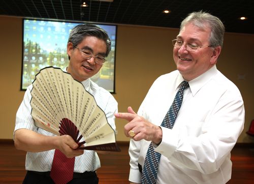 我校国际合作与交流处副处长陈功,科研处处长李小青,国际关系学院院长肖肃、副院长刘玉梅、副院长宋国华、教师朱天祥等参加会议及签约仪式。