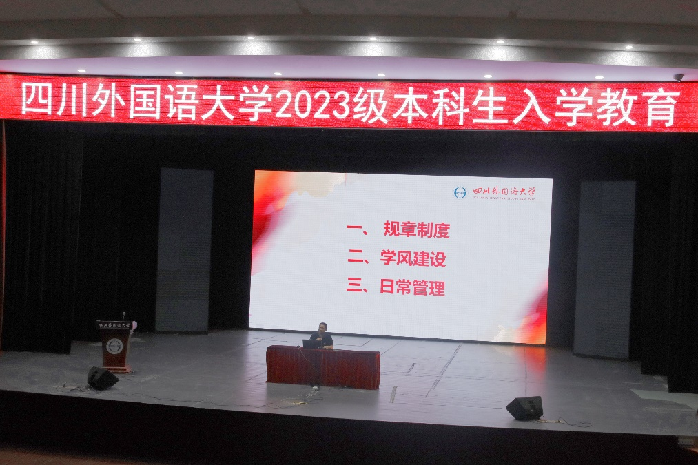 2023年9月14日下午,我校2023级新生入学教育系列讲座在东区大礼堂顺利举行。校医院院长刘新、教务处教务科科长吴必鹏、学生处日常管理科副科长陈果、学生处资困助学中心唐大舜分别向同学们详细讲解健康生活知识、学籍管理规定、日常管理规定和资助育人等方面的内容。2023级全体本科新生分3场参加本次系列讲座。