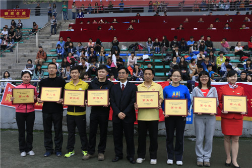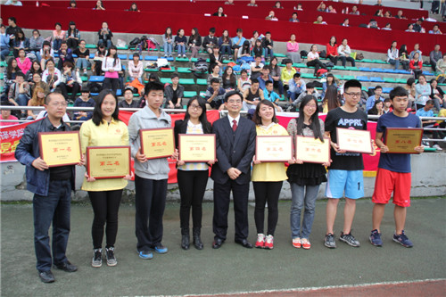 经过两天激烈的比拼,我校2014年春季运动会落下帷幕。4月11日下午,运动会闭幕式在西区运动场举行。校长李克勇,党委副书记、纪委书记聂志强等出席闭幕式,并为获奖单位颁奖。