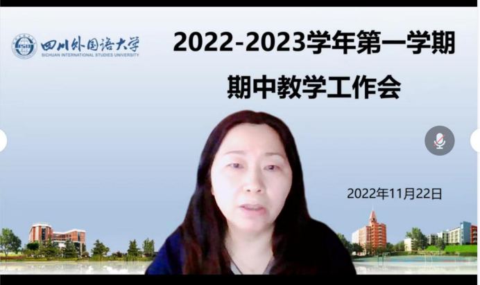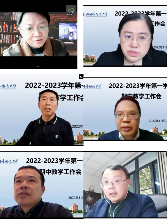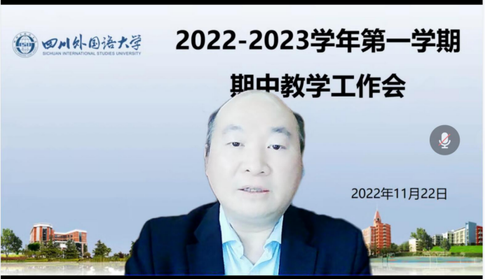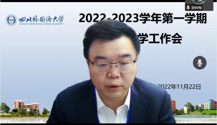 董洪川校长讲话。他首先介绍了学校疫情防控的情况,学校成立专班,尽可能减少疫情对教学的影响,要求学院积极参与科学精准防控,统筹好本科教学和疫情防控工作。他强调,下一步学院做好疫情管控的同时,要提前规划期末考试等本科教学工作,关注师生的身心健康,多做解释和沟通;教务处、财务处等管理部门做好管理服务工作,确保本科教育教学各项工作有序进行。同时,重点事业发展项目不能松懈,要进一步加强一流专业、一流课程、新文科等内涵建设,出成绩上台阶。他还代表学校党委和行政领导班子,向奋战在抗疫一线和教学一线的老师们道一声辛苦了。