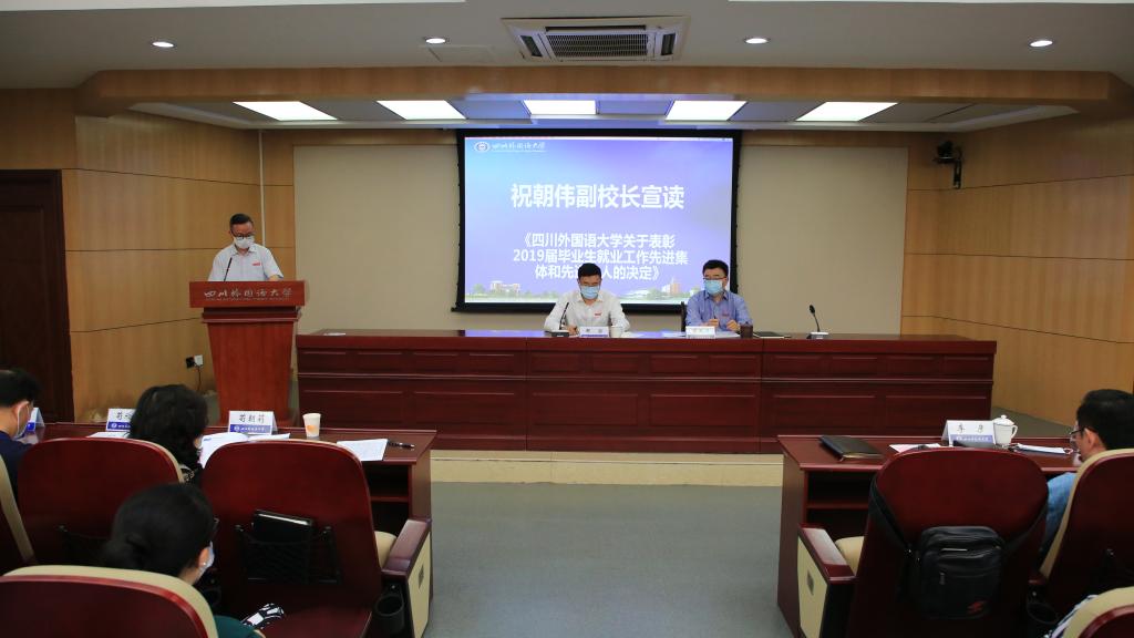 副校长祝朝伟宣读《四川外国语大学关于表彰2019届毕业生就业工作先进集体和先进个人的决定》。与会领导为获奖单位和个人颁奖。