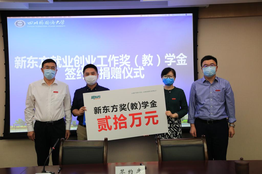 会议举行了新东方就业创业工作奖(教)学金捐赠仪式。我校校友、重庆新东方教育培训学校校长温巍在致辞中表达了对母校培育自己成长成才的感激,表示将继续关心和支持母校的发展。