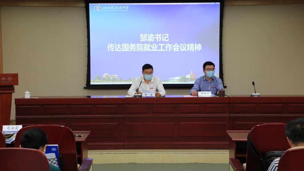 党委书记邹渝在讲话中指出:“顺利毕业、尽早就业”是下一阶段毕业生就业工作的核心准绳。他对毕业生就业工作提出三点要求:一是深刻认识当前面临的形势,切实担负起做好毕业生就业工作的政治责任;二是充分发挥领导干部的带头作用,认真履职尽责,有为担当;三是积极适应疫情防控新形势下的招生工作,开拓线上宣传新渠道,深度挖掘学科专业的优势亮点,确保招生工作高质量有序推进。