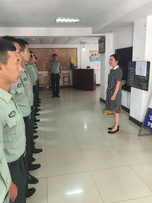 7月18日中午,郑白玲副校长来到锦绣楼食堂和军训教官驻地,看望慰问了承担我校2014级学生军训工作的中国人民解放军重庆通信学院国防教育训练基地全体官兵及各连队指导员老师,转达了学校党委、行政的关心和问候。郑校长了解了军训学生的训练情况、指导员的工作情况和教官的生活情况,指出军训的重要意义和作用,感谢教官们、指导员们为军训工作做出的辛苦。
