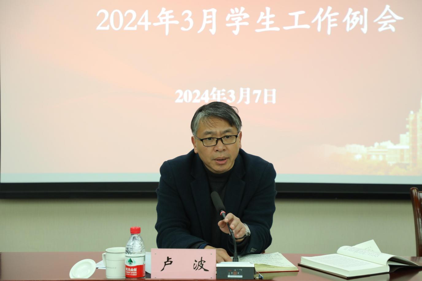 卢波强调,学校对学生工作高度重视,全体学工人员要认真学习领会邹书记的讲话精神及要求,深入贯彻落实各项重点任务。他要求全体学工人员高度重视学生安全稳定,强化人身和财产安全,做好用电、消防、交通、反诈等安全教育;利用好春季招聘期,多方位思考,综合施策,做好毕业生就业工作。