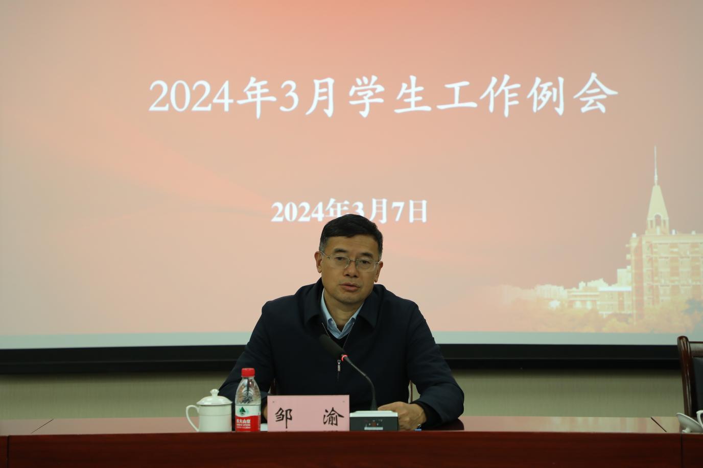 3月7日下午,我校在立德楼A609会议室召开新学期学生工作例会。校党委书记邹渝、副校长卢波,相关职能部门负责人、各学院党总支书记、副书记和全体专兼职辅导员、班主任参加会议。会议由卢波主持。