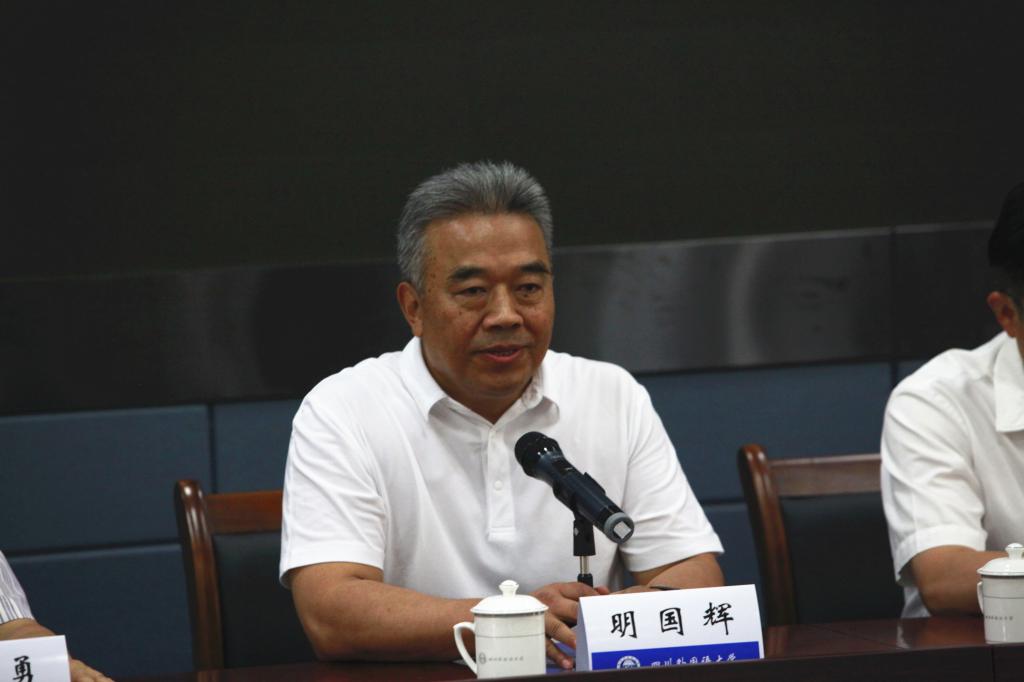 明国辉表示衷心拥护、坚决服从市委的决定,感谢市委对四川外国语大学领导班子和事业发展的关心与厚爱,向邹渝同志的到来表示热烈欢迎。他深情地回顾了在川外五年多的工作经历,表达了对组织、老领导、班子成员、全体师生的感激之情。他表示在川外的五年是他最铭记于心的日子,他将永远珍惜这段缘分,一如既往地关注和关心川外的发展。