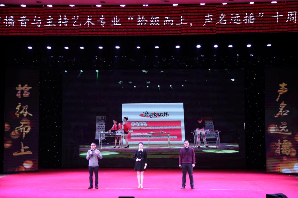 拾级而上,步履铿锵;声名远播,全新起航。11月30日,我校新闻传播学院播音与主持艺术专业十周年文艺晚会于东区大礼堂举行。我校校长李克勇,重庆市播音主持协会会长韩咏秋、协会秘书长邹鸿泽,我校各职能部门和院系负责人以及重庆市各兄弟高校嘉宾莅临晚会现场,共同庆祝播音与主持艺术专业设立十周年。