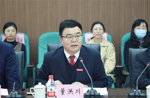 我校董洪川校长对参加签约仪式的单位表示感谢,并希望基地能够建立起完善的运行机制和自我调适机制,明晰发展目标、发展方向和发展路径,更好地服务成渝双城经济圈建设。他指出成立成渝双城经济圈政产学研用一体化高级翻译人才培养基地最主要的两个目标在于语言服务和国际传播,在语言服务方面需要理顺机制、提高服务水平、加强人才储备,才能更好地拓展市场空间;在国际传播方面需要加快高水平国际传播人才培养,提升传播效力。
