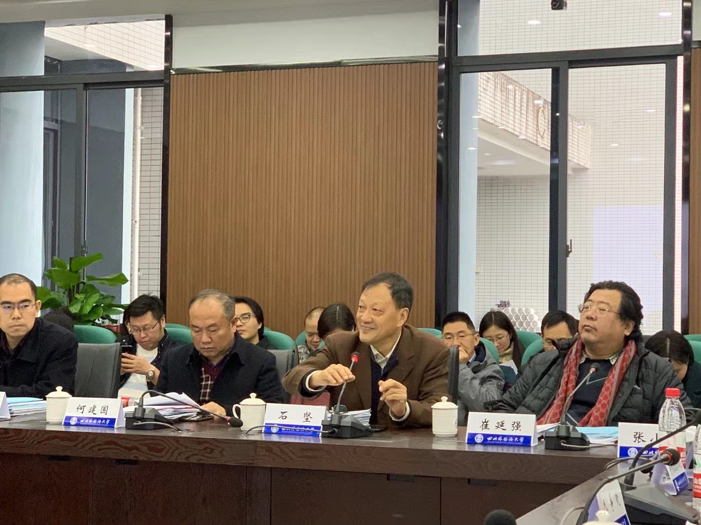 会议第一阶段由王仁强主持。董洪川在欢迎辞中介绍了我校“十三五”期间一流学科和重点学科建设的基本情况,恳请各位专家对各学科存在的不足提出宝贵的意见和建议。
